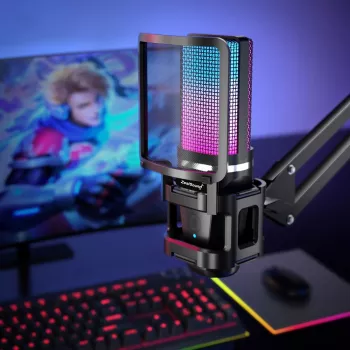 RGB USB Condenser Microphone with Boom Arm and Tripod